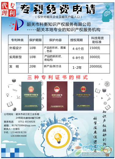 正文摘要:專利免費(fèi)申請!!(僅對韶關(guān)企業(yè)和戶籍人口)韶關(guān)市科衡知識產(chǎn)權(quán)服務(wù)有限公司-----韶關(guān)本地專業(yè)的知識產(chǎn)權(quán)服務(wù)機(jī)構(gòu)地址:韶關(guān)市武江區(qū)工業(yè)東路24號陽光康地A棟702房電話:0751-8536926聯(lián)系人:王工手 機(jī) ... |